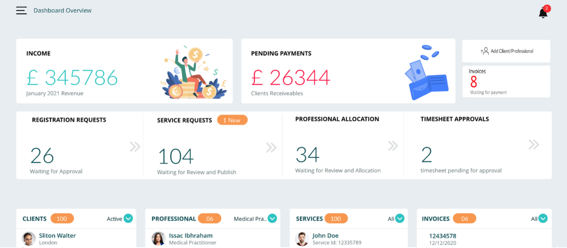 BHAVIAANS Care & Smile is a platform for the Health Care Agencies and Service Providers to manage their operations and services. Platform helps to manage their Clients and Medical Practitioners and Professionals, Services and Professional allocations. It helps in rostering of the practitioners, scheduling and allocations, connect professionals with clients, manage work hours and generate salary slips of professionals, generate client invoices and track payments